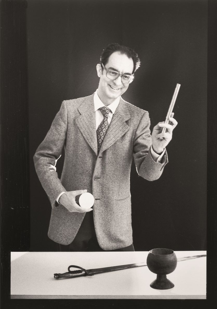 Finalmente disteso. Una delle tre foto di Mario Monge che ritrae Calvino nei panni del Bagatto, qui sorridente (1973) |